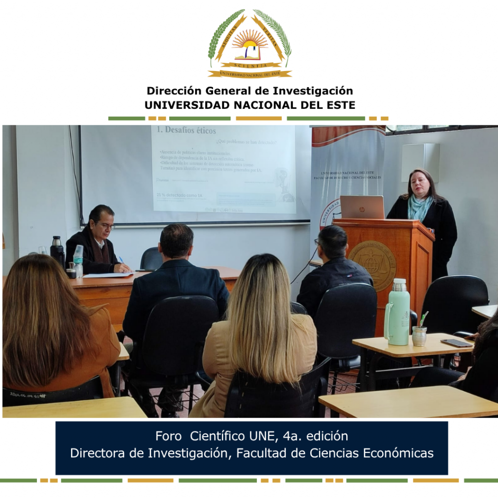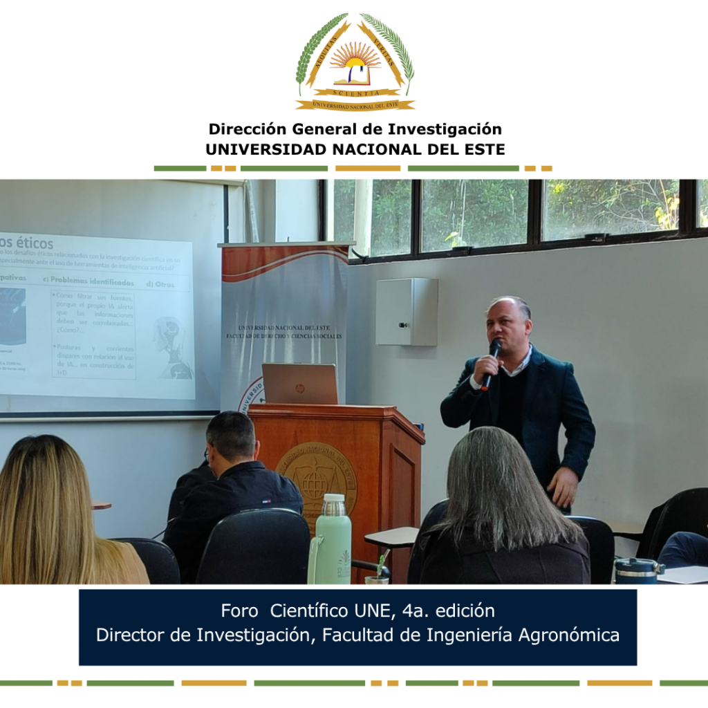 Con la participación de autoridades, docentes e investigadores de la Universidad Nacional del Este, el viernes 30 de mayo se llevó a cabo el Foro Científico 2025 bajo el tema central: «É𝘁𝗶𝗰𝗮 𝗲 𝗶𝗻𝘁𝗲𝗹𝗶𝗴𝗲𝗻𝗰𝗶𝗮 𝗮𝗿𝘁𝗶𝗳𝗶𝗰𝗶𝗮𝗹: 𝘀𝘂 𝗶𝗺𝗽𝗮𝗰𝘁𝗼 𝗲𝗻 𝗹𝗮 𝗴𝗲𝗻𝗲𝗿𝗮𝗰𝗶ó𝗻 𝗱𝗲 𝗰𝗼𝗻𝗼𝗰𝗶𝗺𝗶𝗲𝗻𝘁𝗼𝘀 𝗲𝗻 𝗹𝗮 𝗨𝗡𝗘».
