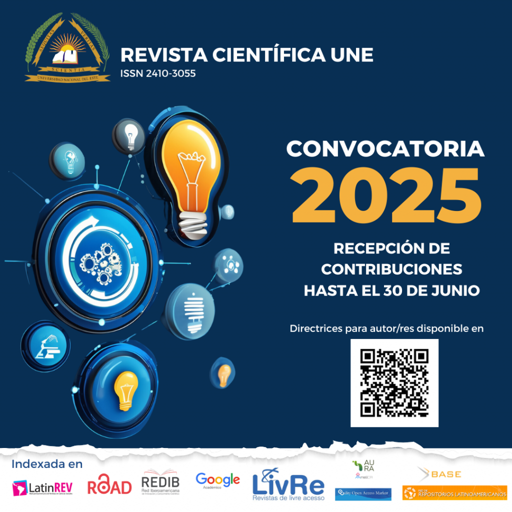 El Área de Gestión Editorial de la Dirección General de Investigación de la Universidad Nacional del Este informa a la comunidad académica y científica que se encuentra abierta la convocatoria para recepción y evaluación de artículos científicos.